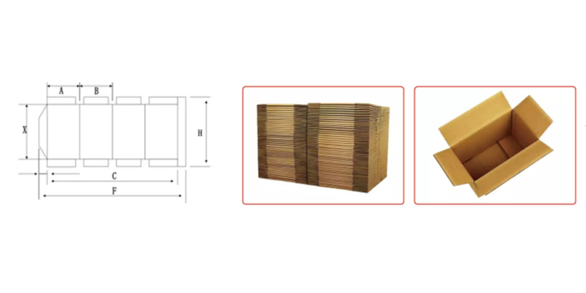 - Máquina de alta performance para produção de caixas de papelão, imprime, corta, vinca, fecha, cola e empacota com fita PP, totalmente automática.