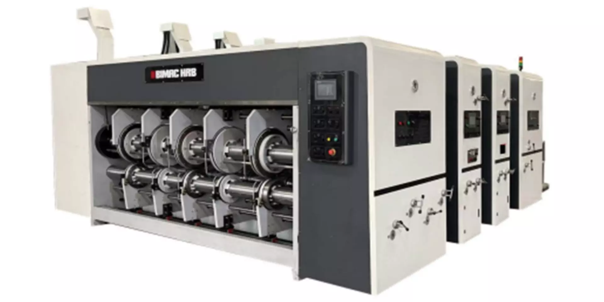 - Máquina para produção de caixas de papelão, imprime, corta, vinca